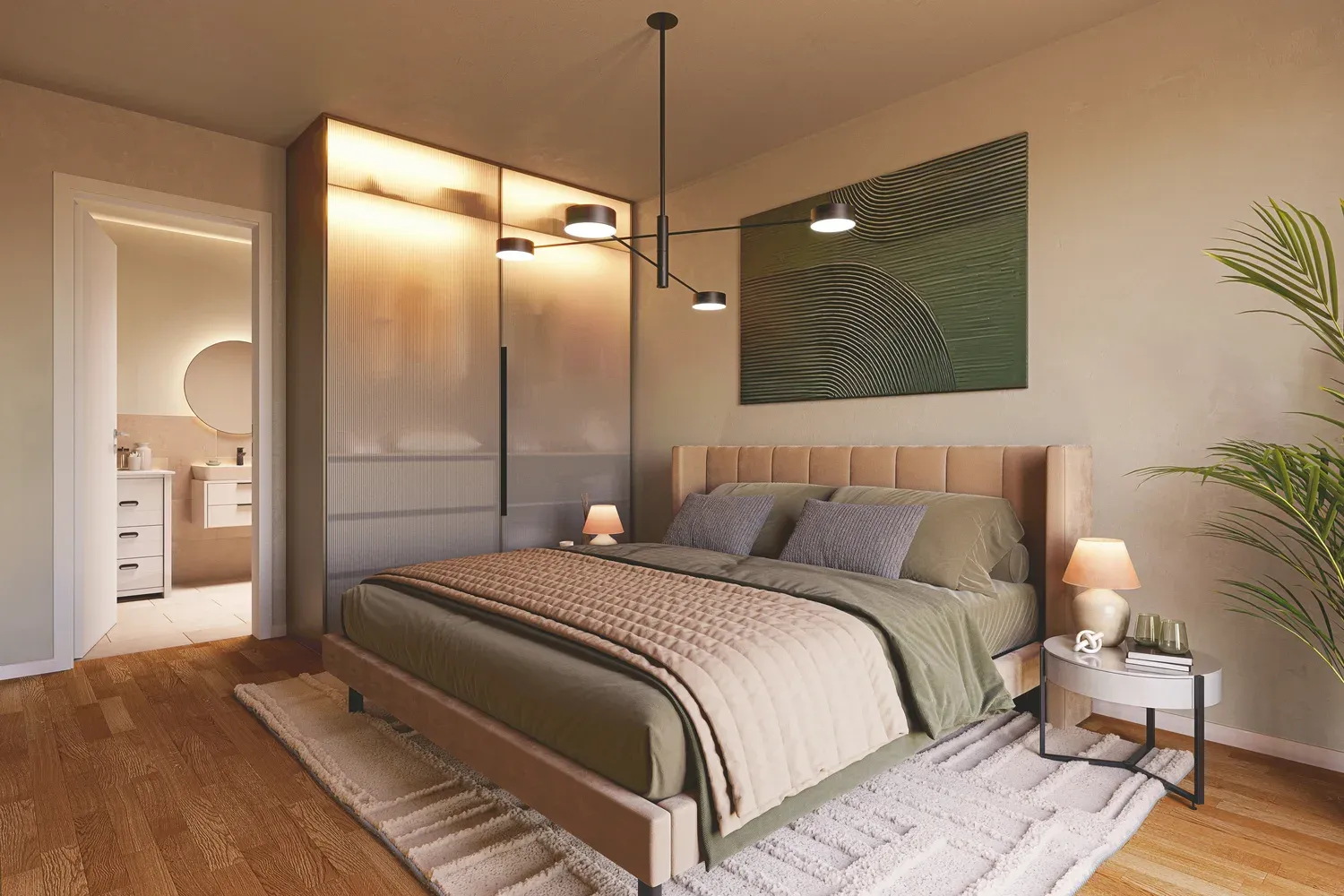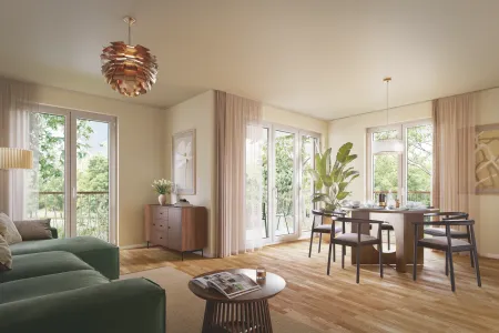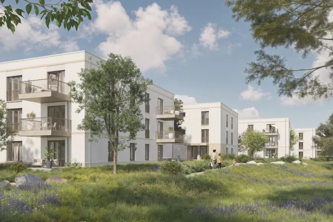 Insgesamt entstehen im neuen Viertel neben Wohnungen auch Schulen, Kitas und ergänzendes Gewerbe, eingebettet in eine grüne Umgebung. Für Kapitalanleger besonders attraktiv: 5,0 % degressive Abschreibung p. a., KfW-Förderung ab 1,0 % Zins p. a. und Kaufpreise ab 6.570 €/m² (PMB).