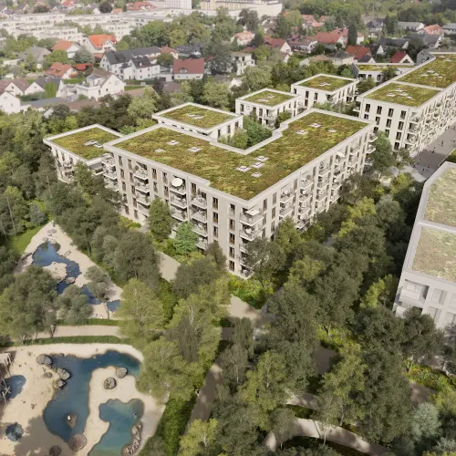 Auf 23 Hektar entsteht ein visionäres Quartier, das Raum für Nachhaltigkeit, Lebensqualität und echte Nachbarschaft schafft. Hier verbinden sich großzügige Grünflächen, vernetzte Wege und eine gewachsene Infrastruktur zu einem Umfeld mit langfristiger Perspektive.