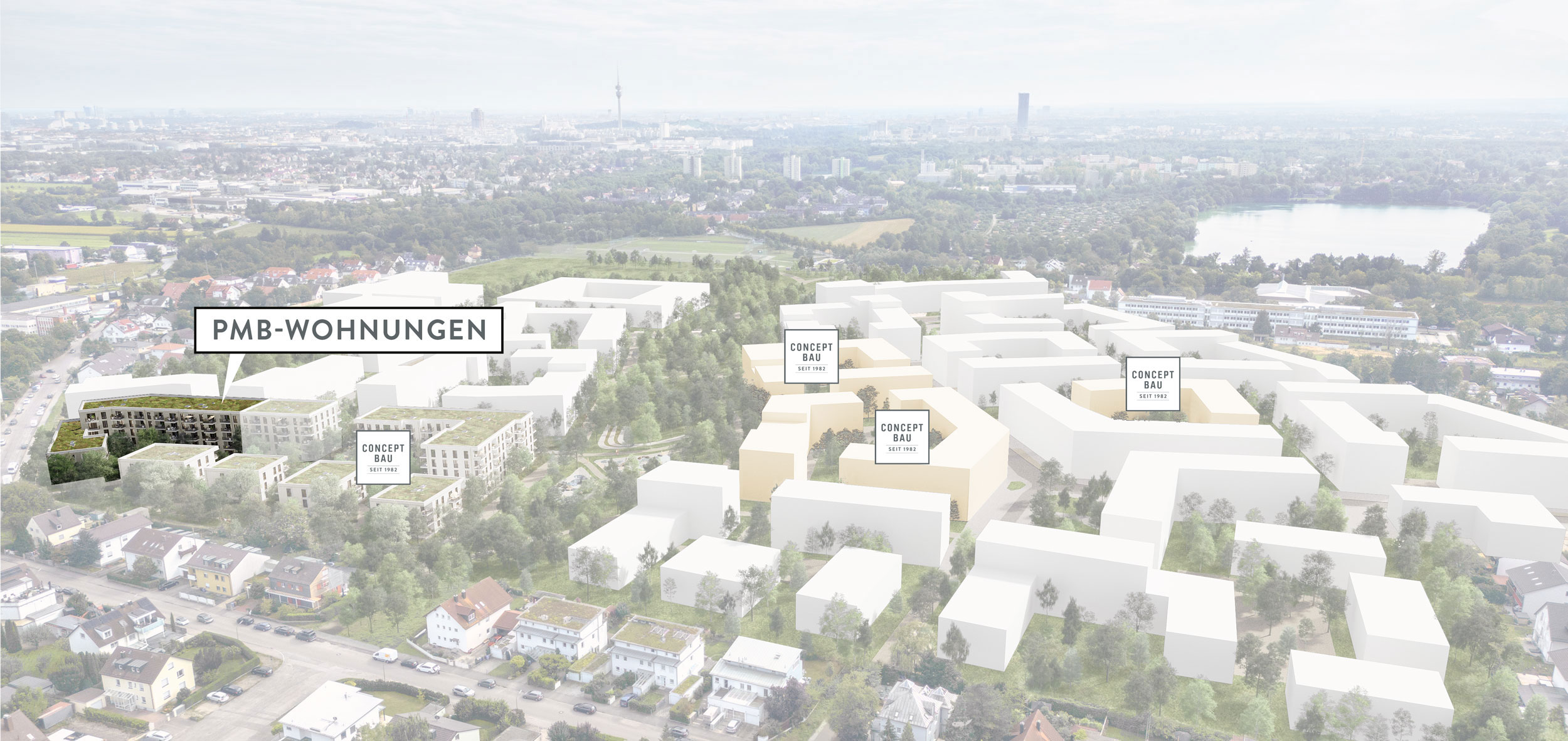 Eingebettet zwischen gewachsenem Bestandsgebiet und einer attraktiv begrünten Freizeitfläche überzeugen die Wohnungen durch ihre hervorragende Anbindung an den öffentlichen Nahverkehr mit S- und U-Bahn.